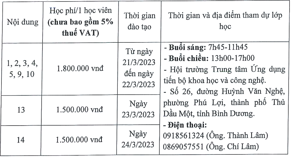 - Các đơn vị có số lượng đăng ký trên 10 học viên/1 nội dung thì hai bên thỏa thuận giá.